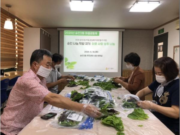 숭인제2동과 마을공동체 사업 참여자 어르신들은 행사 전날인 15일 상추를 수확해 행사 당일 정성껏 포장하여 관내 기초생활수급대상 어르신 50여 명에게 전달했다.