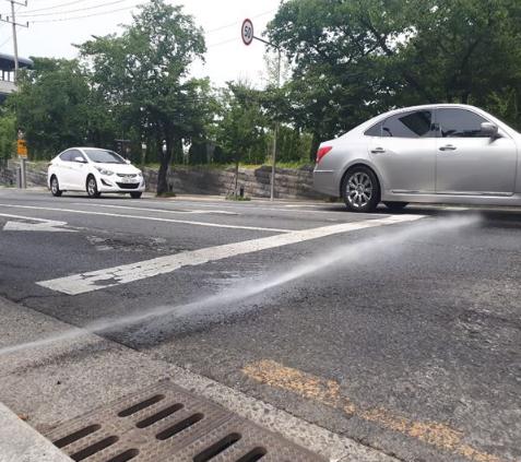 남구청에 따르면, 폭염기간 기온이 높은 시간대인 오전 10시부터 오후 8시까지 관내 유동인구가 많은 간선도로를 2개 노선으로 나누어 8톤 살수차 2대를 1일 3회 운영하고 있다.