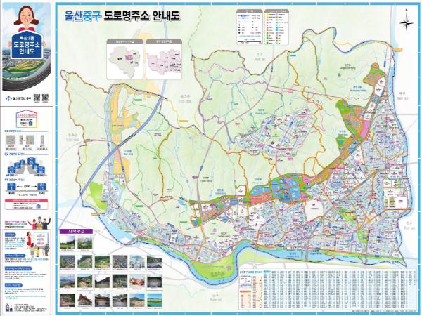 울산 중구(구청장 박태완)는 도로명주소 사용 활성화를 위해 행정동별 접지형 도로명주소 안내도를 제작해 배부했다.