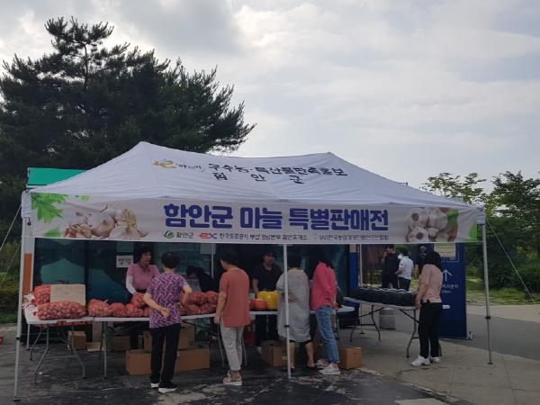 이 직거래장터는 최근 3년간 마늘가격이 하락하여 마늘재배 농업인의 시름이 깊어지는 상황에서 농업인을 돕기 위해 추진하는 마늘 소비촉진행사로 함안군 산지에서 재배된 햇마늘을 5kg에 12,000원 10kg에 23,000원의 가격으로 판매한다.
