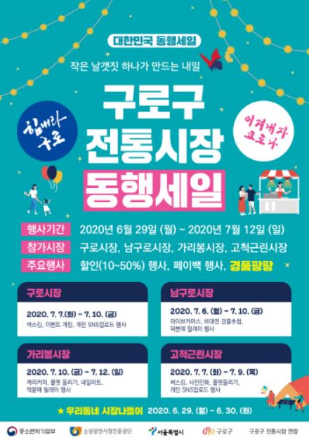 서울특별시 구로구(구청장 이성)가 코로나19 장기화로 위축된 지역경제를 활성화하기 위해 ‘우리동네 시장나들이’ 행사를 개최한다.