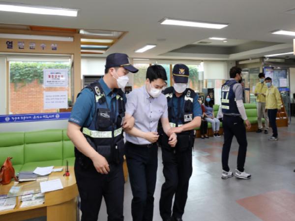 이날 훈련은 폭언 · 폭행 상황을 가상해 진행됐으며 참석자들은 비상벨 작동 여부와 경찰 출동상황 등을 점검했다.