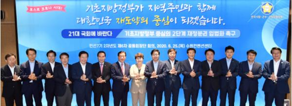 『전국시장·군수·구청장협의회』(대표회장 염태영 수원시장)는 6월 25일‘수원컨벤션센터’에서 민선7기 2차년도 마지막 제6차 공동회장단회의를 열고 지난 1년간(2019.7.1.~2020.6.30.) 주요성과와 향후과제 등에 대해 심도 있는 논의를 하였다.