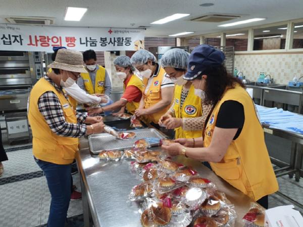 부산시 사상구 덕포1동 적십자봉사회(회장 김영환)에서는 지난 24일 결연가구에 사랑의 빵 나눔 봉사활동을 실시하였다.