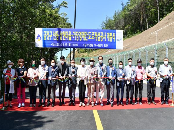 부산 금정구(구청장 정미영)는 지난 22일 금정구 선동 상현마을~기장경계간 도로(길이 2,140m, 폭 12~15m)개설 공사를 완료하고 상현마을 일원에서 개통식을 가졌다고 밝혔다. 이번 개통식에는 정미영 금정구청장을 비롯해 금정구의회 의장, 부산시의원 및 인근주민 등 40여 명이 참석하였다.