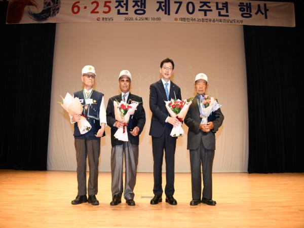 경상남도는 25일 오전 10시 경남도청 대강당에서 ?.25전쟁 제70주년 행사’를 개최했다. 6.25전쟁 70주년을 맞아 한반도 평화에 대한 의지를 다지고 6.25참전유공자에 대한 존경과 감사의 마음을 전하기 위해 열렸다.