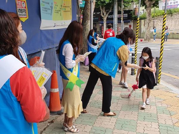 이번 캠페인은 코로나19 방역의 날(매월 넷째 수요일)을 맞아 홍보용 방역마스크를 나눠주며 진행했다. 민식이법 시행에 따라 사회적 이슈가 되고 있는 스쿨존 교통안전을 당부하고, 대중교통 이용시 마스크 착용 의무화 등 생활 속 거리두기를 홍보했다.