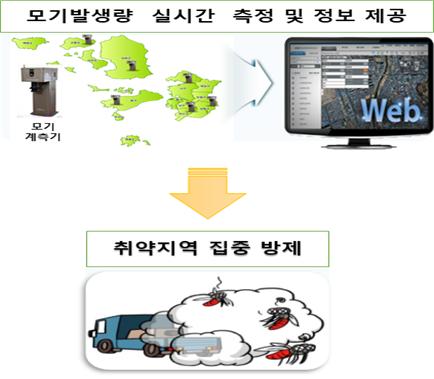 실시간 모기발생정보 모니터링은 채집·데이터 정리·정보 전달 등 전 과정이 자동화 되어 있어 기존 모기밀도조사 보다 모기발생정보 생산시간이 13배 빠르며, 생산된 발생정보 데이터는 모기방제 최일선 기관인 보건소에 매일 제공함으로써 신속하게 취약지역을 선정하여 행정력(예산, 인력 등)의 낭비 없이 효율적이고 집중적으로 선제적 방제를 할 수 있도록 사용된다.