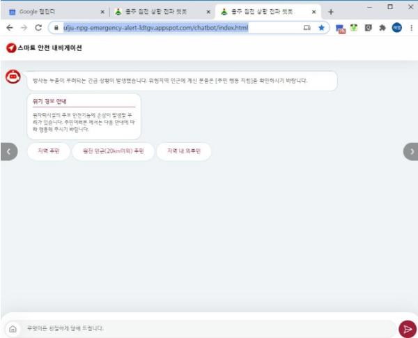 또한, 공무원에게도 재난 방재매뉴얼을 대화형으로 제공해 담당부서 및 유관기관 연락처, 재난분야 임무수행 기관과 직원을 손쉽게 찾을 수 있는 기능 등 다양한 재난업무에도 활용이 가능하다.