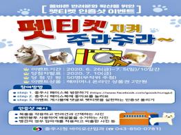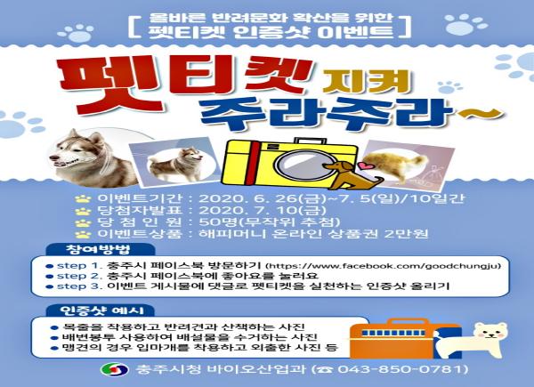 충주시는 성숙한 반려 문화 확산을 위해 시 공식 페이스북을 통해 ‘펫티켓 지켜 주라 주라~’이벤트를 진행한다.