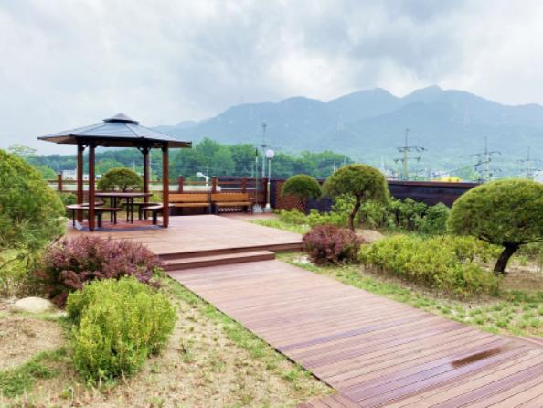 또한 220㎡의 면적에 소나무 등 교목 2종 8주와 나무수국 등 관목 9종 335주, 꽃잔디 등 초화류 8종 1300본을 심어 녹색공간을 조성하고, 등의자·파고라·나무데크 등도 설치해 주민과 민원인들이 주민센터를 이용하며 편안하게 쉴 수 있도록 조성했다.