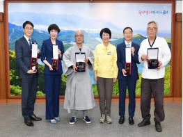 금정구(구청장 정미영)는 지난 25일 소독용 알코올, 손소독제 등 방역물품과 성금 전달 등을 통해 코로나19 확산 방지 및 극복에 기여한 대선주조, ㈜닥터메종, 광명사, 범어사, 금천선원, 소정교회 등 6개 기관에 ‘코로나19 극복 협력’감사패를 전달하였다.