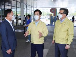 허태정 시장은 이날 해당 시설의 열화상 카메라 설치와 손소독제 설치, 대기동선 시행 여부 등 방역상황을 꼼꼼히 살폈다.