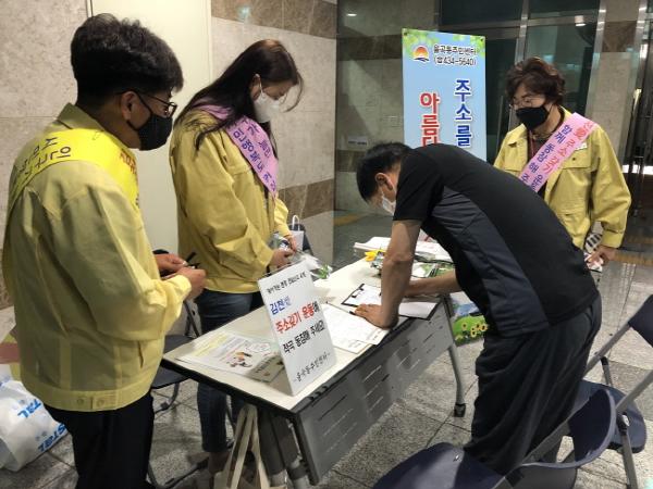 율곡동은 관내 공동주택 18곳의 전입률을 전수조사한 결과, 전입률이 상대적으로 저조한 오피스텔을 선정하였고, 관리실의 협조를 미리 구하여 직장인들의 퇴근시간 무렵에 전입신고 접수를 받았다. 또한, 김천-문경간 철도건설의 조속한 사업추진을 촉구하는 서명운동도 함께 병행해 전개했다.