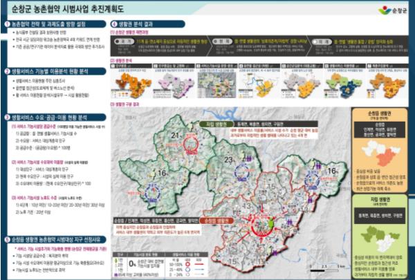 군은 순창읍과 인계·적성·유등·풍산·금과·팔덕면 등 총 7개 읍면을 대상 지역으로 정하고, 이들 지역에 필요한 생활SOC 시설, 복지, 보건·의료, 보육, 문화·체육 등의 취약한 분야에 역량을 집중할 예정이다. 또한 일반농산어촌개발사업의 읍?면 소재지, 마을에 대한 점(點) 단위 투자에서 공간(面) 단위로 투자범위를 확대, 생활권이 같은 지역과 사업 간 연계·복합화를 통한 365생활권 조성 및 농촌정책 목표를 달성할 방침이다.