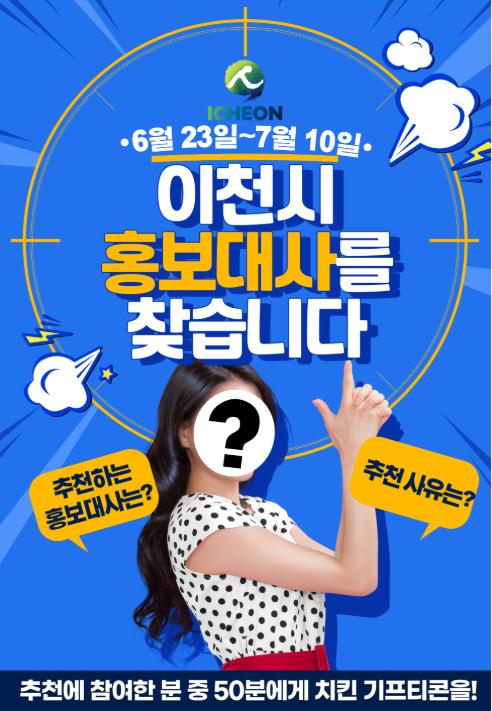 추천방법은 https://bit.ly/icheon_pr에 게재된 참여요령에 따라 추천할 수 있으며, 1인 1회에 한해 최대 3인까지 추천이 가능하다. 참여자 중 추첨을 통해 50명을 선정하여 소정의 상품을 제공하는 이벤트도 같이 진행한다.