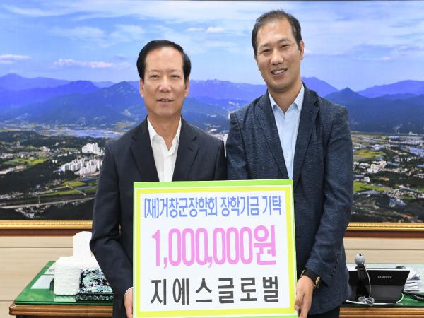거창군은 지에스글로벌(대표이사 주문성)에서 거창군청을 방문해 (재)거창군장학회(이사장 구인모)에 장학금 100만원을 기탁했다고 26일 밝혔다.