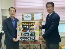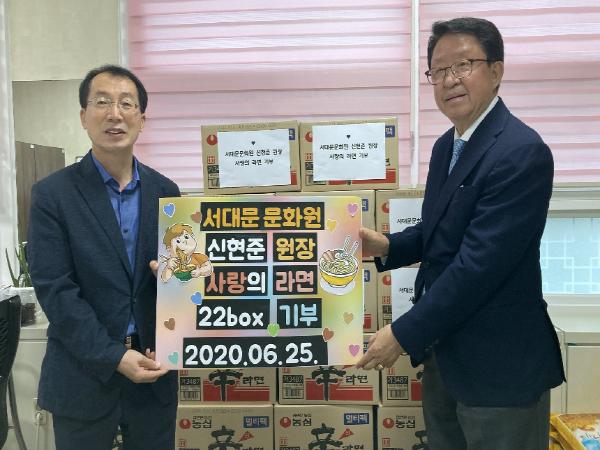 서대문문화원 신현준 원장이 최근 코로나19로 어려움에 처한 이웃에게 전해 달라며 홍은2동주민센터에 60만 원 상당의 라면 22box를 기부해 주위를 훈훈하게 했다.
