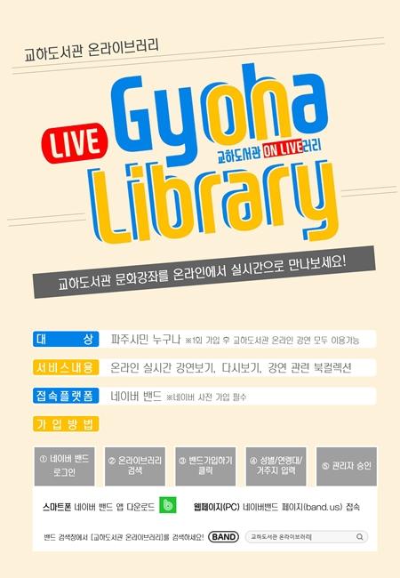 파주시 교하도서관은 코로나19 상황으로 장기화된 비대면 서비스 기간 동안 파주시민이 인문학 강연과 북컬렉션을 온라인 공간에서 만나볼 수 있도록 ‘온라이브(On Live)러리’ 서비스를 제공한다고 29일 밝혔다.