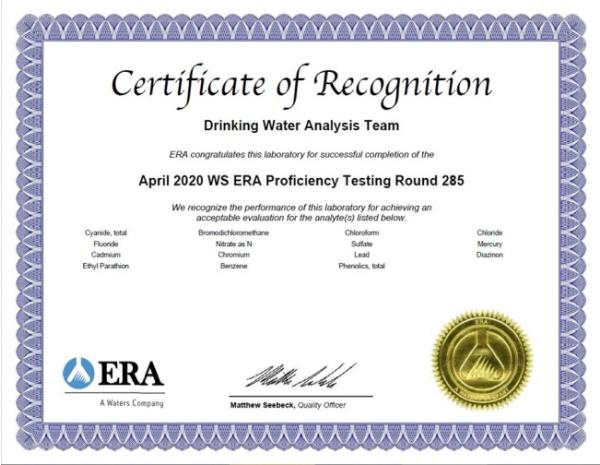 ERA는 전 세계 환경 관련 실험실의 분석 능력 숙련도를 검증하는 기관으로, 미국 환경보호청(US EPA), 국제시험기관 인정협력기구(ILAC) 및 국제표준화기구(ISO/IEC)가 인증한 국제 숙련도 시험시행기관이다.