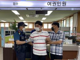 이날 훈련은 민원실 공무원과 경찰 등 30여명이 참여한 가운데 민원인이 공무원에게 폭언과 폭행을 하는 상황을 가장해 민원응대 매뉴얼에 따른 역할 숙지와 민원실 비상벨 정상 작동 여부 등을 점검했다.