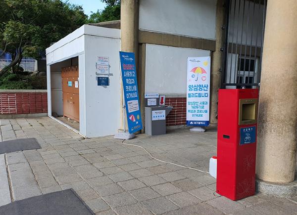 양산 대여는 대여소에 비치된 관리대장에 성별, 연령대를 작성 후 이용하면 된다. 반납은 대여소가 설치 된 곳이면 어디든 가능하다.