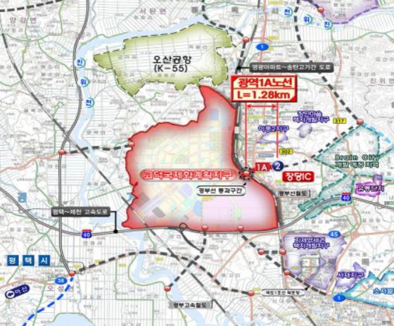 평택시(시장 정장선)와 LH 평택사업본부(본부장 황필재)는 고덕국제신도시(이하 신도시)와 국도 1호선을 잇는 도로(광역1A)를 6월 30일(화) 13시부터 개통한다고 밝혔다.