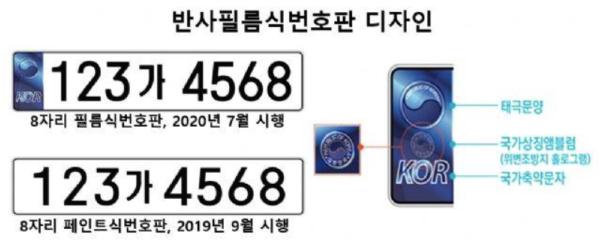 시는 이번에 도입되는 반사필름식 번호판은 기존 페인트식 번호판에는 적용할 수 없는 국가상징 문양과 국가축약문자, 홀로그램 등 색상과 디자인을 적용하여 위변조 방지는 물론, 자동차 전조등이나 후레시 등에 반사하는 기능으로 더 높은 야간 시인성을 제공하게 돼 교통사고를 줄이는 효과도 있을 것으로 기대하고 있다.