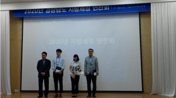 경남도 주관으로 개최된 2020 지방세정 연찬회 연구과제 발표대회는 도내 18개 시·군에서 제출한 22건의 연구과제 중 1차 서면심사를 통해 6건을 선정했으며, 이날 시·군의 발표를 통해 내용의 충실성, 발표력, 질의응답 대응력 등을 종합적으로 평가해 최종 수상자가 선정됐다.