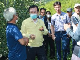 이번 현장방문은 여름철 기록적인 폭염이 예상되며 이에 따라 과일 일소(햇볕 데임)현상, 열과현상 등 고온 및 태풍으로 인한 피해가 우려되므로 사전에 점검하고 예방하기 위해 이루어 졌다.