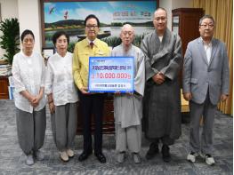 창녕군 (재)대한불교관음종 법성사(주지 법명스님 황우종)는 29일 창녕군을 방문해 (재)창녕군인재육성장학재단(이사장 한정우)에 1,000만 원의 장학금을 기탁했다.