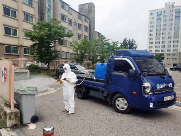 함양군 내 음식쓰레기를 수집·운반 대행하는 합자회사 함양환경(대표 이효숙)에서 코로나19와 여름철을 맞아 공동주택 음식쓰레기 수거용기와 배출지 소독활동을 펼치고 있어 미담이 되고 있다.