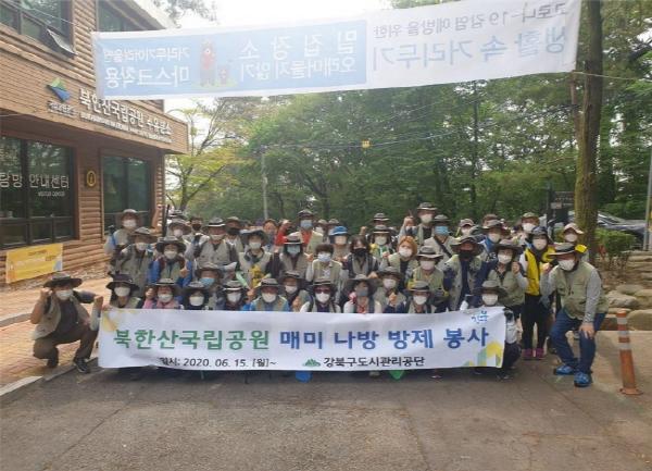 공단은 매미나방 유충 피해를 예방하고 환경보호에 기여하고자 봉사활동을 시작했다. 코로나19로 수영장 등 실내체육시설 운영이 어렵게 되어 발생한 유휴인력을 활용했으며, 북한산 국립공원 내 2차 피해를 우려해 화학적인 방법을 사용하지 않고 물리적인 방법으로 활동을 펼쳤다.