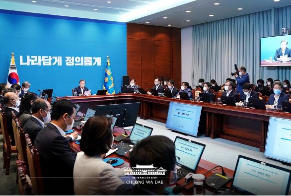 이어 문재인 대통령은 "코로나 대유행이 장기화하면서 세계 경제의 침체가 더욱 극심해지고 있다"며 "모두가 힘을 모아 국난 극복에 함께 나서지 않으면 안 된다"고 강조했다.