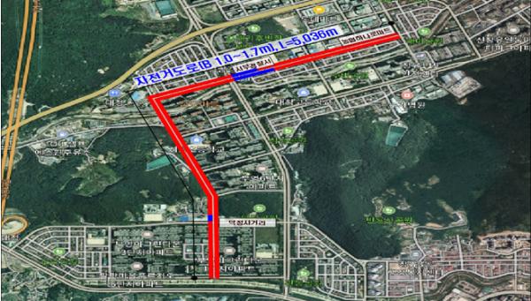 이 사업은 2019년 11월 행정안전부 주관 ‘자전거도로 사고위험지역 안전개선 시범공모사업’에 선정돼 확보한 국비(특별교부세) 1억9000만원과 시비 2억원 등 총 3억9000만원을 들여 진행한다.