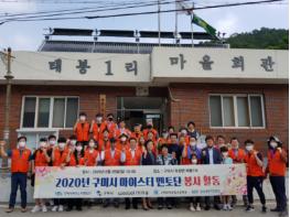 구미시 마이스터멘토단(단장 김종석)은 6월 28일(일) 오전 10시부터 마이스터멘토단원, 구미전자공업고등학교 학생, 경북경영자총협회 및 구미시 노동복지과 관계자 등 35명이 참여한 가운데 옥성면 태봉1리 마을에서 재능 나눔 봉사활동을 실시하였다.