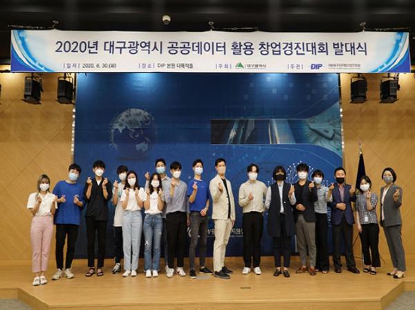 30일 오전 10시 DIP 1층 다목적홀에서 ‘2020년 대구광역시 공공데이터 활용 창업경진대회’ 참여자들이 발대식을 가지고 본격적인 창업활동에 나섰다.