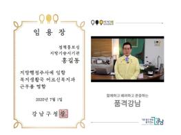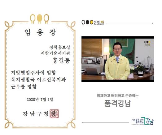 특히 조직개편과 맞물린 하반기 정기전보는 사회적 거리두기 실현을 위해 비대면 모바일임용장 수여식으로 대체하게 되며, 전보대상 공무원 개인별로 모바일임용장과 정순균 구청장의 격려영상이 함께 발송된다.