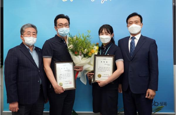 서울 성북구(구청장 이승로)가 보이스피싱으로부터 주민의 소중한 재산을 지켜 준 장위2동 새마을금고 정두진 상무, 김하린 대리를 표창했다.