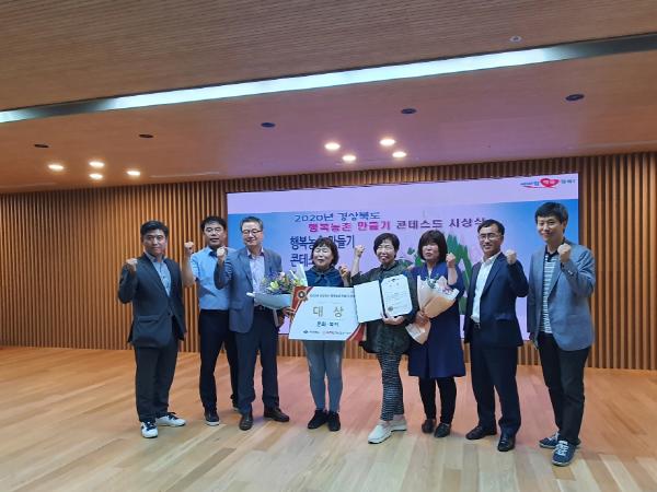 경북 영주시(시장 장욱현)는 지난 30일 ‘2020년도 경상북도 행복농촌만들기 콘테스트’에서 영주시 소천1리마을이 문화? 복지 분야에서 대상을 수상했다고 밝혔다.