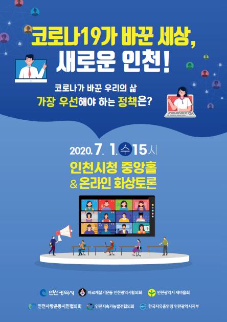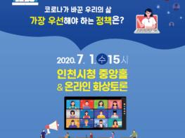 인천시(시장 박남춘)는 7월 1일 인천시청 중앙홀과 온라인 화상토론을 연계해 ‘코로나19가 바꾼 세상, 새로운 인천!’이라는 주제로「인천 시민시장 대토론회」을 개최했다고 밝혔다.