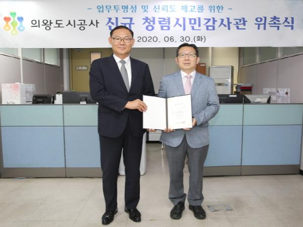 의왕도시공사(사장 최욱, 이하 공사)는 지난 30일, 공사 본사에서 신규 청렴시민감사관 위촉식을 가졌다.