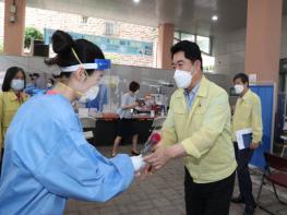 민선7기 취임 2주년을 맞은 7월 1일 오전 9시, 박준희 관악구청장이 관악구 보건소 선별진료소를 방문해 의료진과 공무원에게 빨간 장미꽃 한 송이를 전달했다.