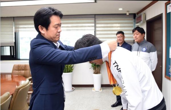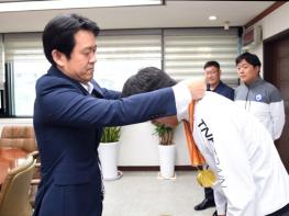 의정부시 황범순 부시장(직장운동경기부 단장)은 6월 30일 2020 KBS 양양 전국사이클대회에서 우수한 성적을 거두고 돌아온 의정부시청 사이클팀의 박상훈, 차동헌 선수를 격려했다.