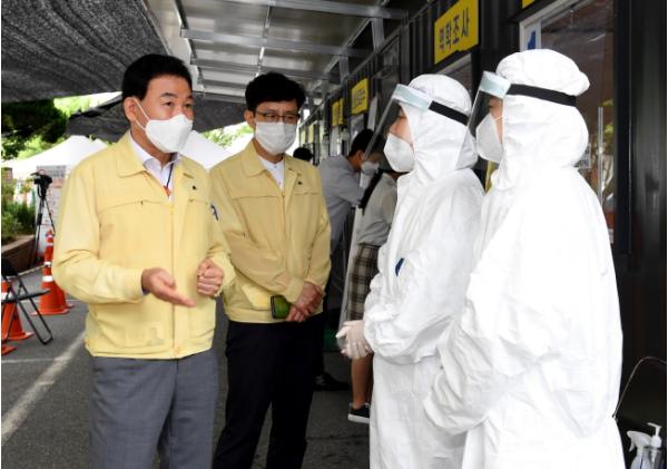박 청장은 중구 선별진료소를 방문해 내?외부 시설물을 점검하며 의료진과 관계자의 노고에 감사를 표했다.