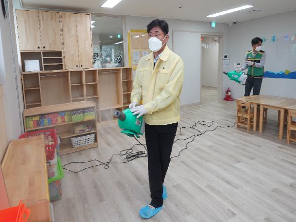 이와 관련해 고남석 구청장은 지난 30일 청학동 소재 하나키즈 어린이집과 송도동 소재 국공립베르디움어린이집을 방문해 소독기를 전달하며 어린이집 방역관리 실태를 확인하고 직접 방역활동을 펼쳤다.