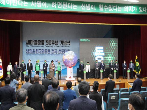 기념식은 코로나19 사태를 감안해 철저한 방역 하에 진행되었고 참석 규모도 1천여 명에서 150여 명으로 대폭 축소하여 개최되었으며, 정세균 국무총리와 윤종인 행정안전부 차관, 정성헌 새마을운동중앙회장을 비롯한 다수의 국회의원, 주한 외국대사 등이 참석해 새마을운동 50주년을 축하하였다.