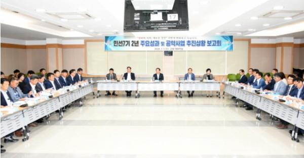 평창군은 지난 1일(수) 군청 대회의실에서 각 부서장 및 읍?면장, 주무담당이 참석한 가운데‘민선7기 2주년 성과 및 공약사업 보고회’를 개최했다.