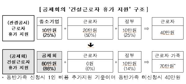 '근로자 휴가지원사업'은 한국관광공사가 직장 내 자유로운 휴가문화 조성과 쉼표가 있는 삶을 위해 중소기업, 소상공인 등을 대상으로 추진해 왔으며, 공제회가 소속 건설근로자의 복지 확대를 위하여 해당사업에 참여하게 되었다.