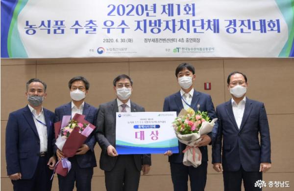 충남도가 농림축산식품부 ‘제1회 농식품 수출 우수 지자체 경진대회’에서 1위인 대상 지자체로 선정되는 영예를 안았다.